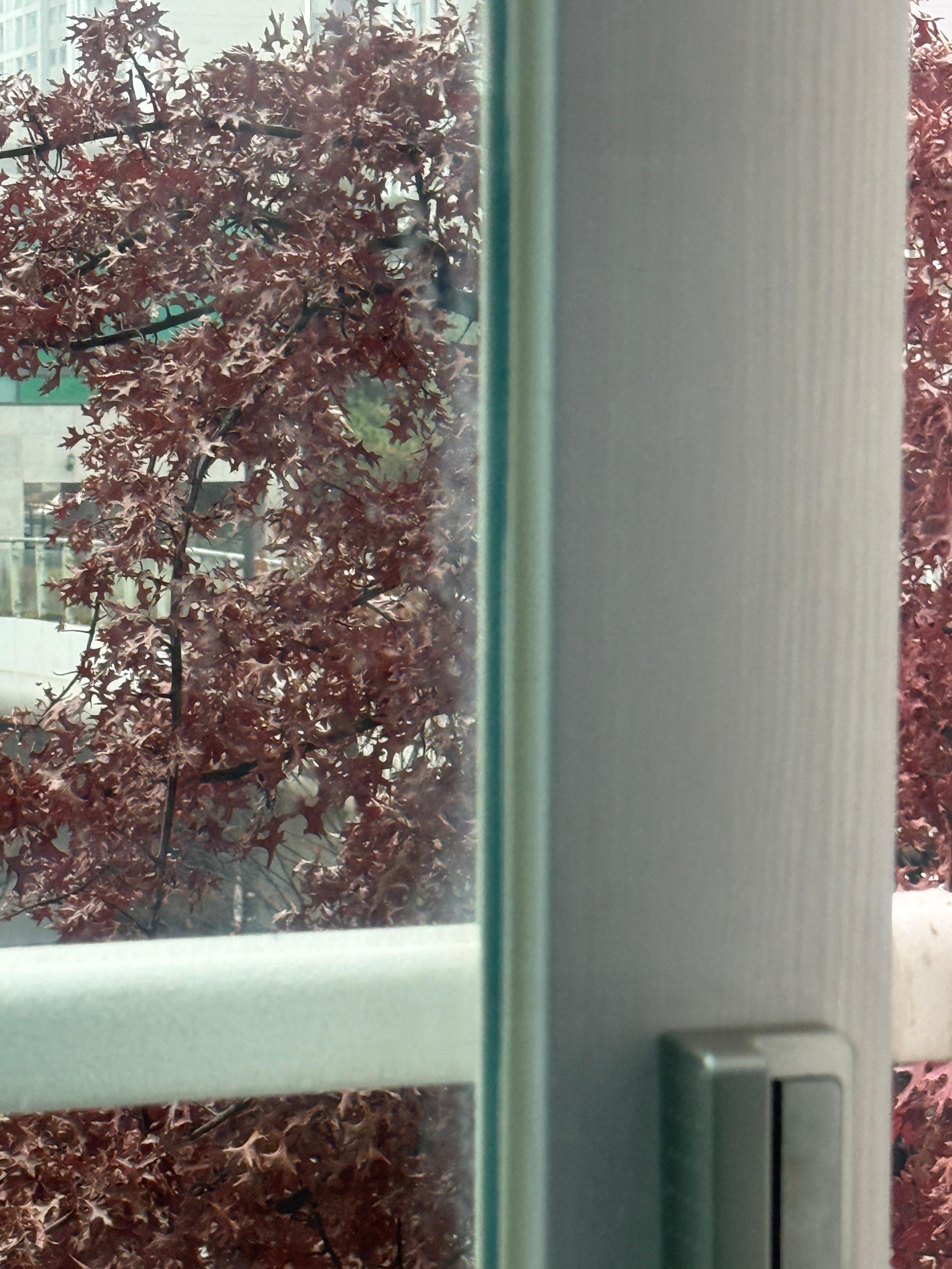밖은 맑은데 창문은 아주 흐릿흐릿합니다