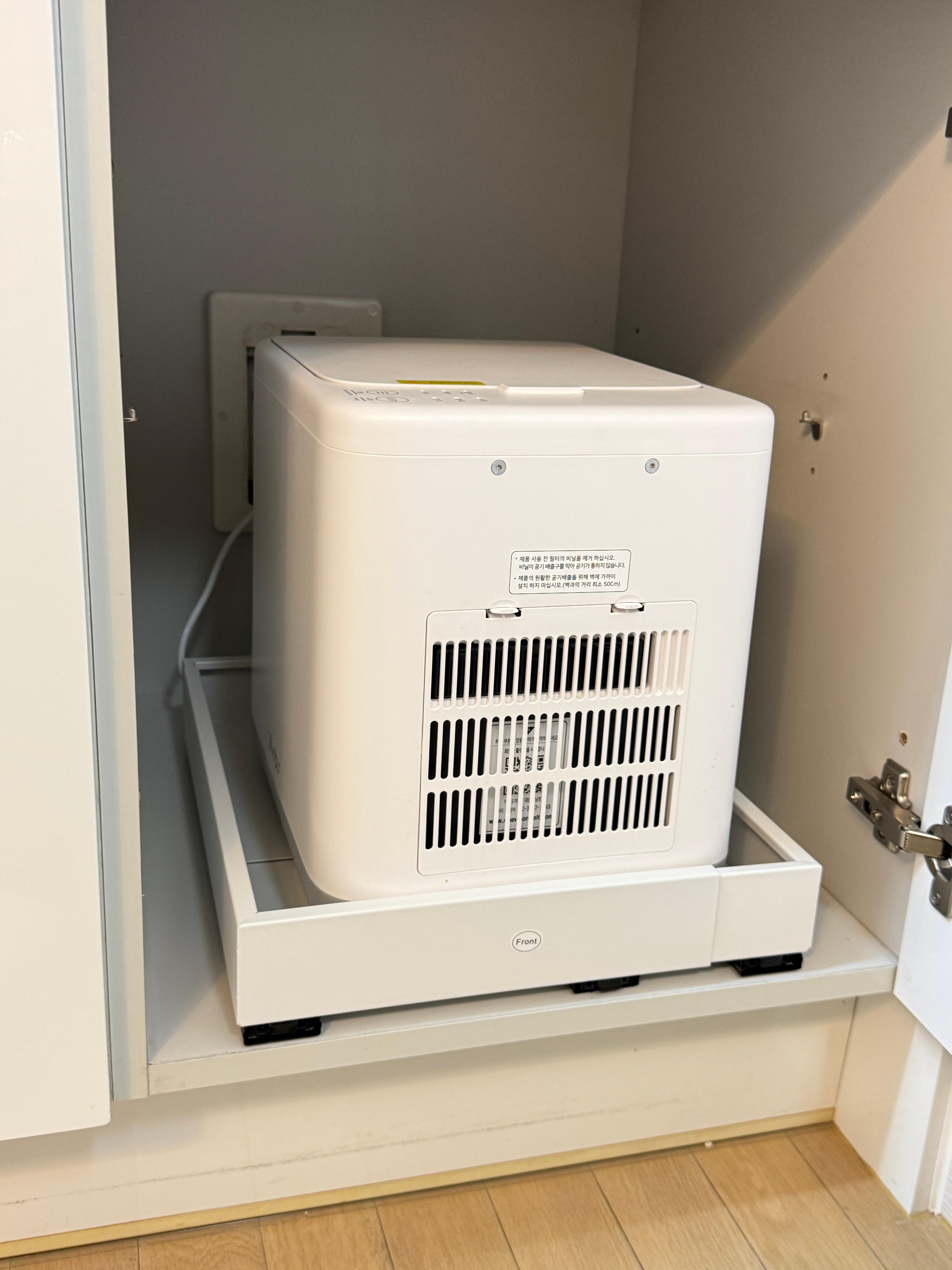 그래서 주방 하부장에 넣어두고 필요할 때만 당겨서 쓸 수 있도록