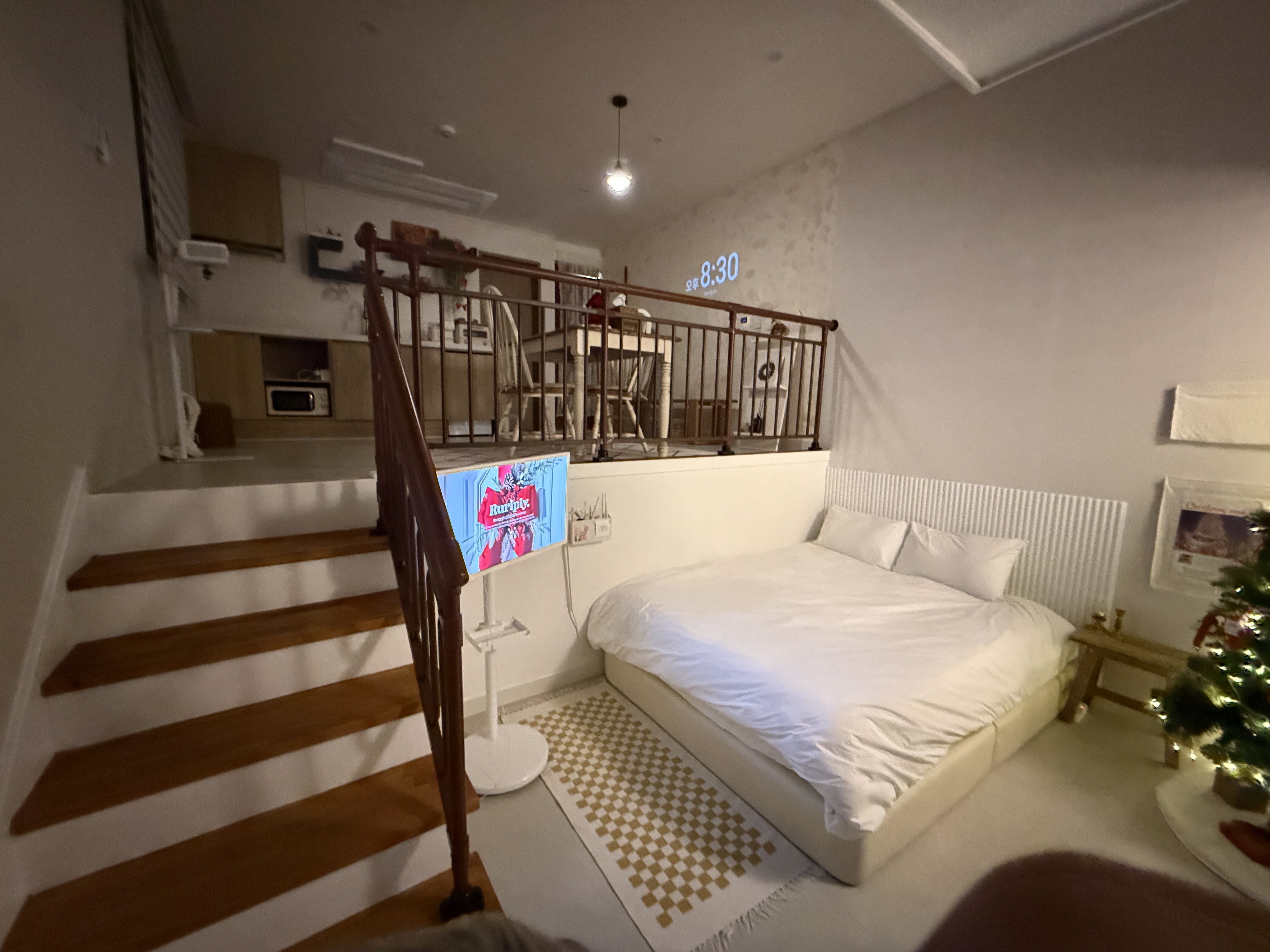 낮은 복층으로 이쁘게 꾸며진 소품들과 깔끔한 내부로