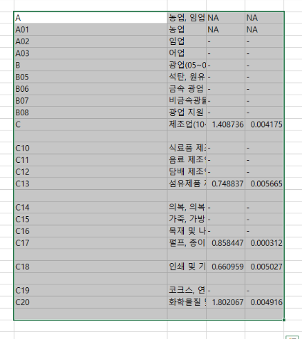 그러면 사진과 같이 데이터 중 빈 셀부분이 선택되게 되는데요
