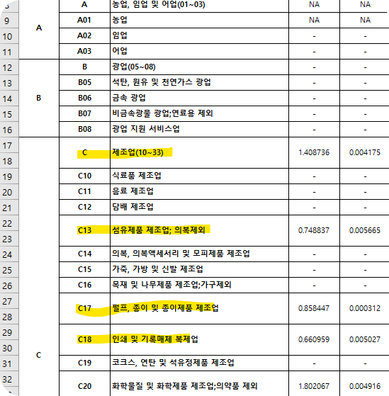 형광처리된 곳과 같이 불규칙하게 병합돼서 2줄 이상 잡아먹는 데이터가 있습니다