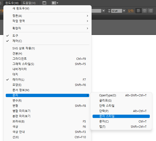 윈도우 - 문자 - 문자스타일을 들어가시게 되면