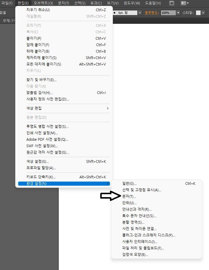 편집 - 환경설정 - 문자로 들어가시면