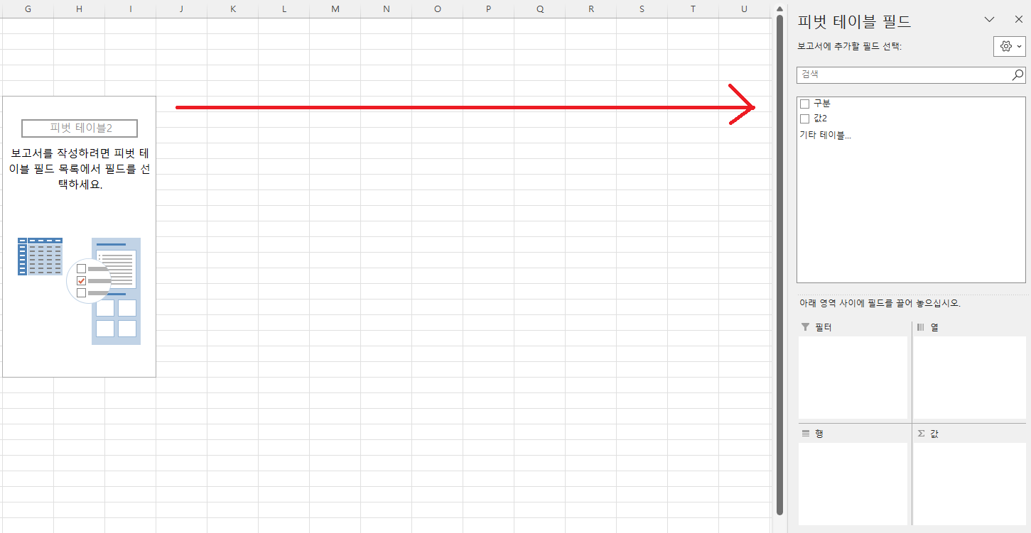 엑셀 오른쪽에 필드창이 나오게 됩니다